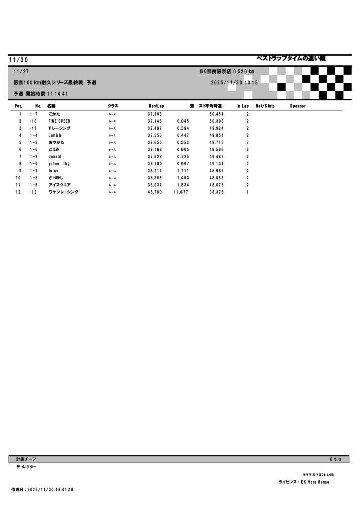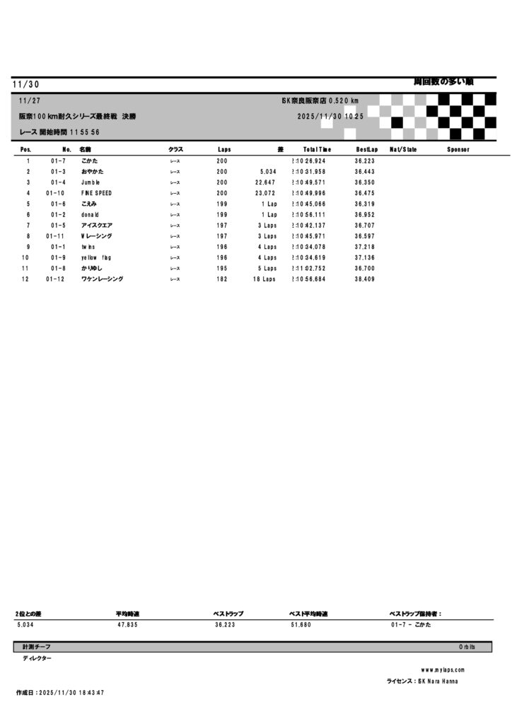 【ISK奈良阪奈100km耐久シリーズ最終戦結果】