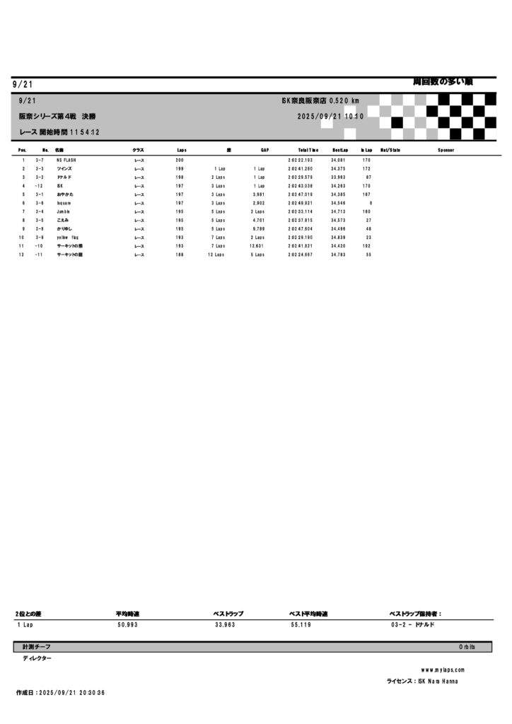 お待たせいたしました。昨日開催しました「ISK奈良阪奈シリーズ第4戦」の結果です!